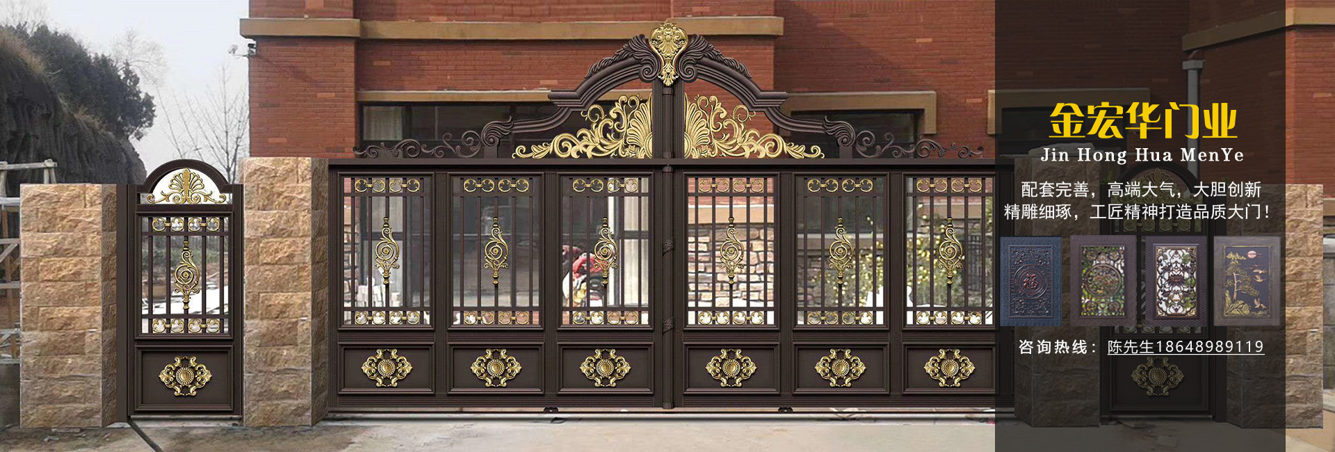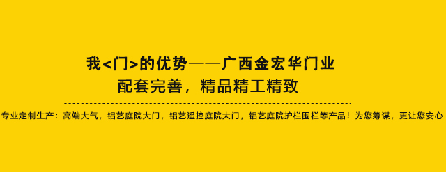 金宏華鋁藝門業專業生產定制:別墅鋁藝大門,庭院大門,圍墻大門,陽臺欄桿,圍墻圍欄,樓梯扶手;專業工廠免費設計;精品質-宏華造